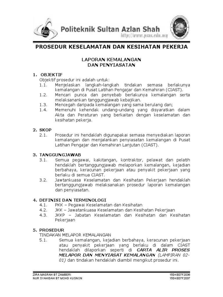 Contoh Laporan Siasatan Kemalangan Di Tempat Kerja Siasatanizen